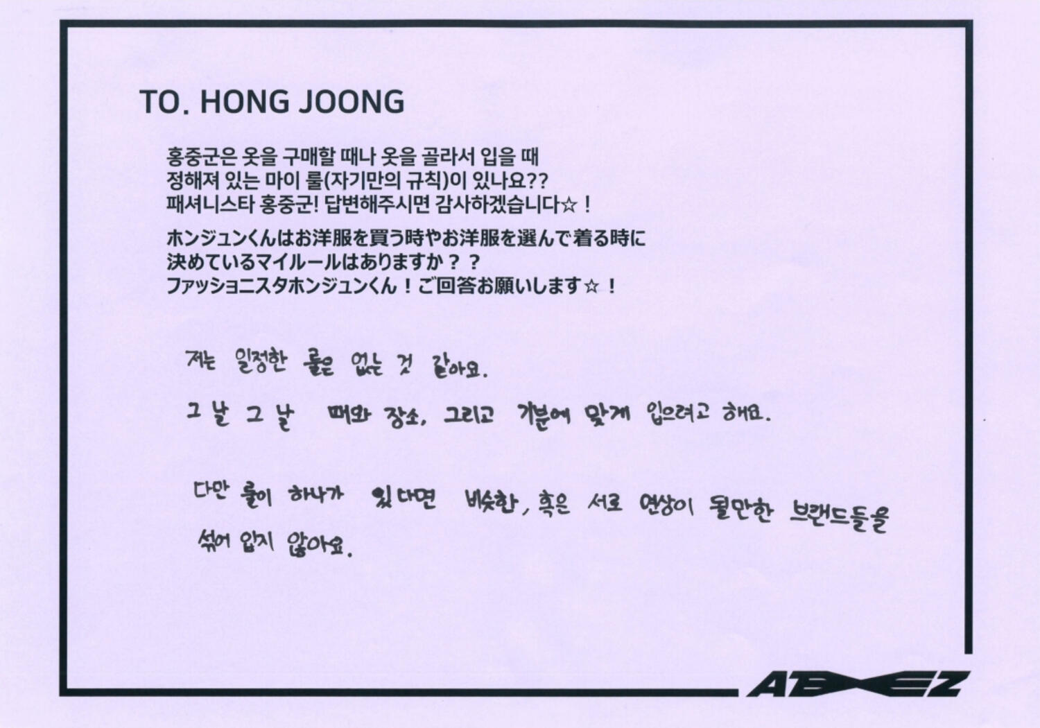 Q. What are you most into these days??HONGJOONG