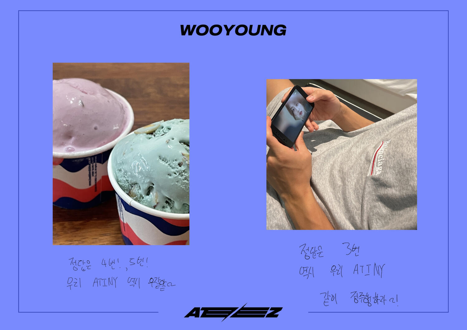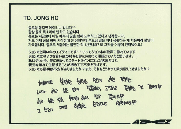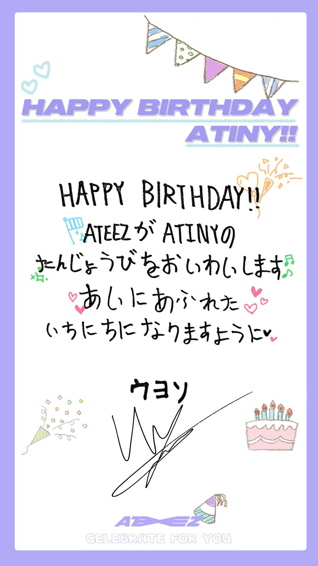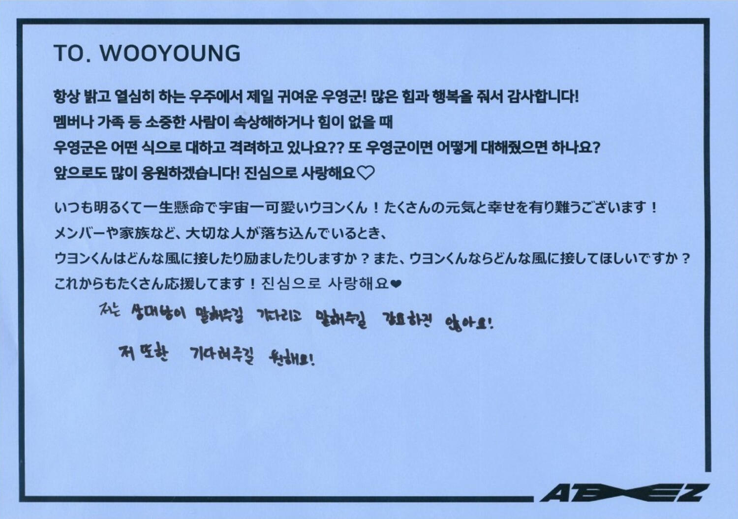 From. ATEEZ WooyoungWe will protect you anytime, anywhere, and don't worry about us because we're close to each other! Thank you always, I love you♡