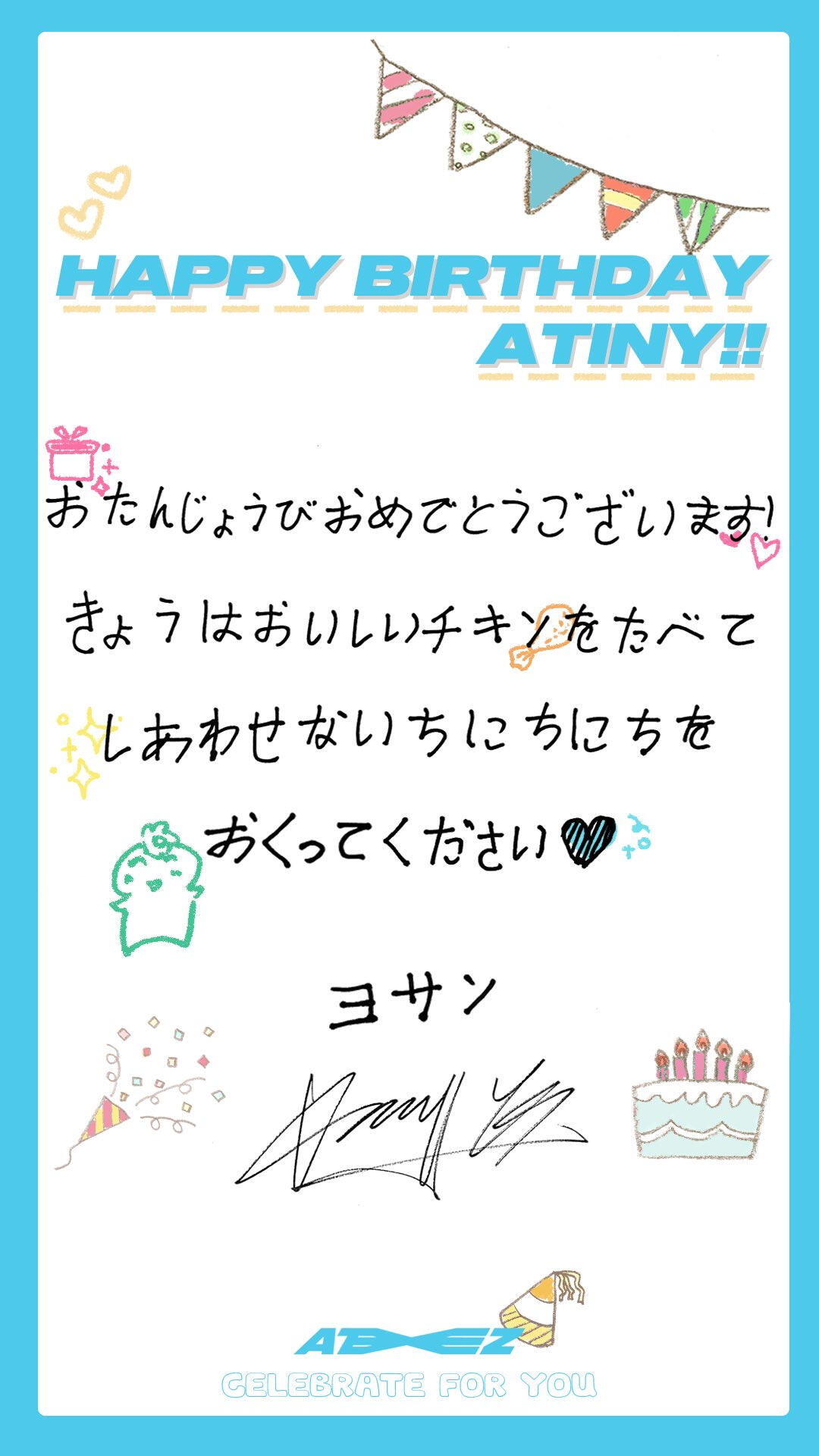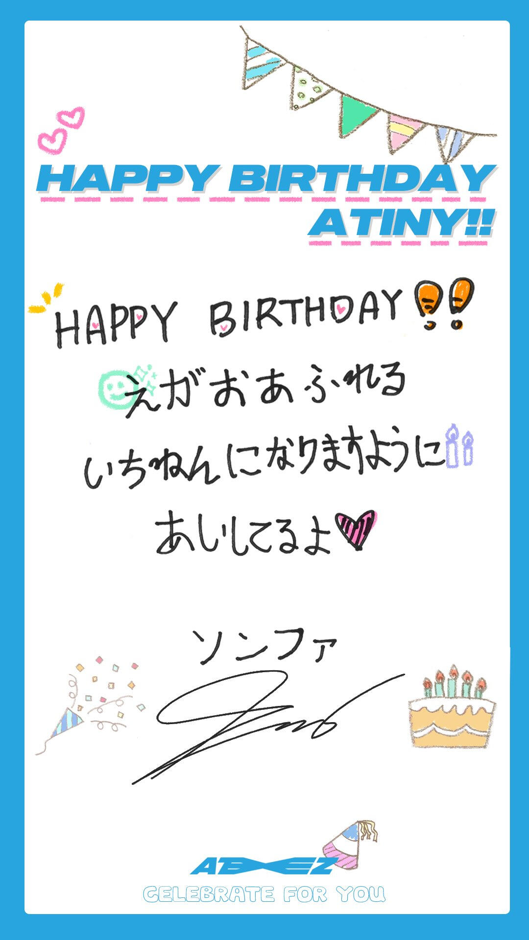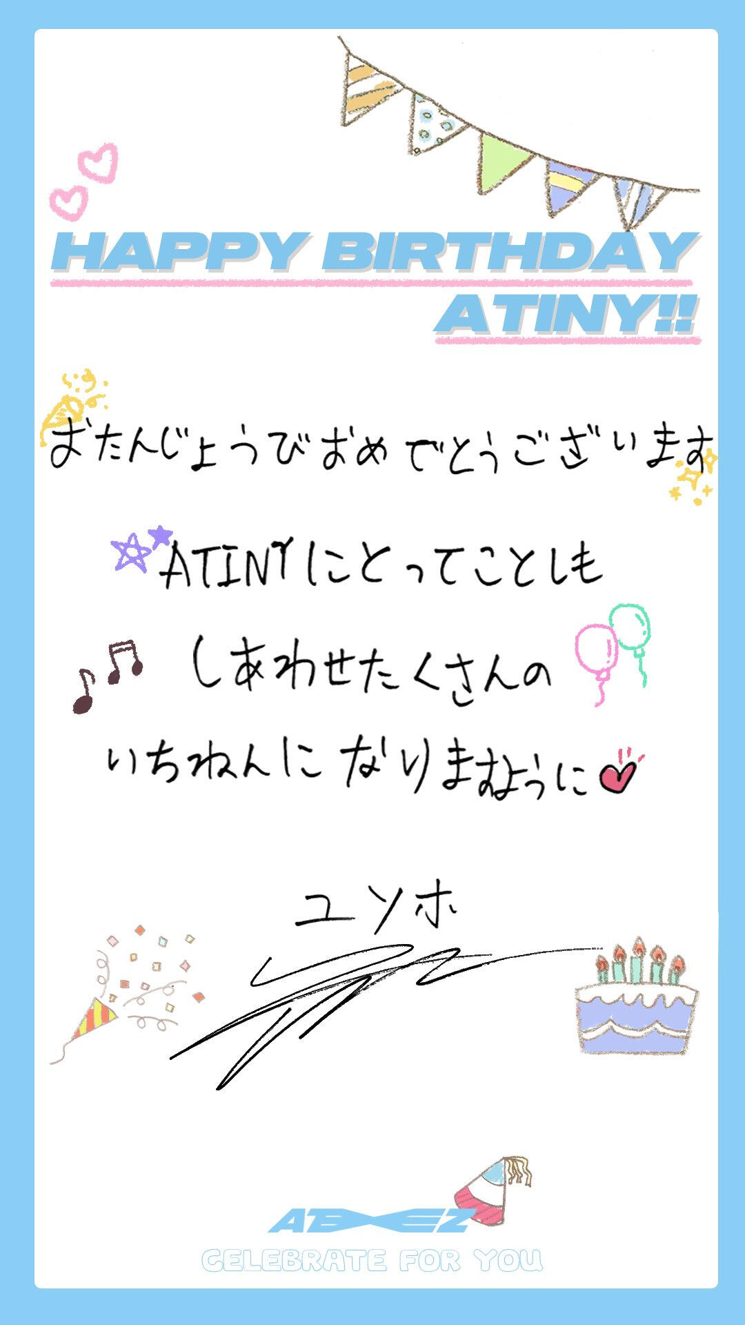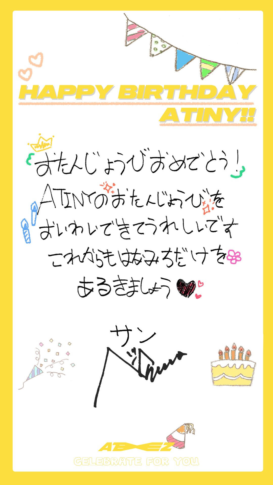 Hello ATINY!! I prepared a commemorative heart card for White Day this time!! You've always given me sweet days, so this time we're giving you presents! (White!!) Our pure and bright ATINY!! I love you a lot and I love you again ♡ Today is out ATINY DAY ~