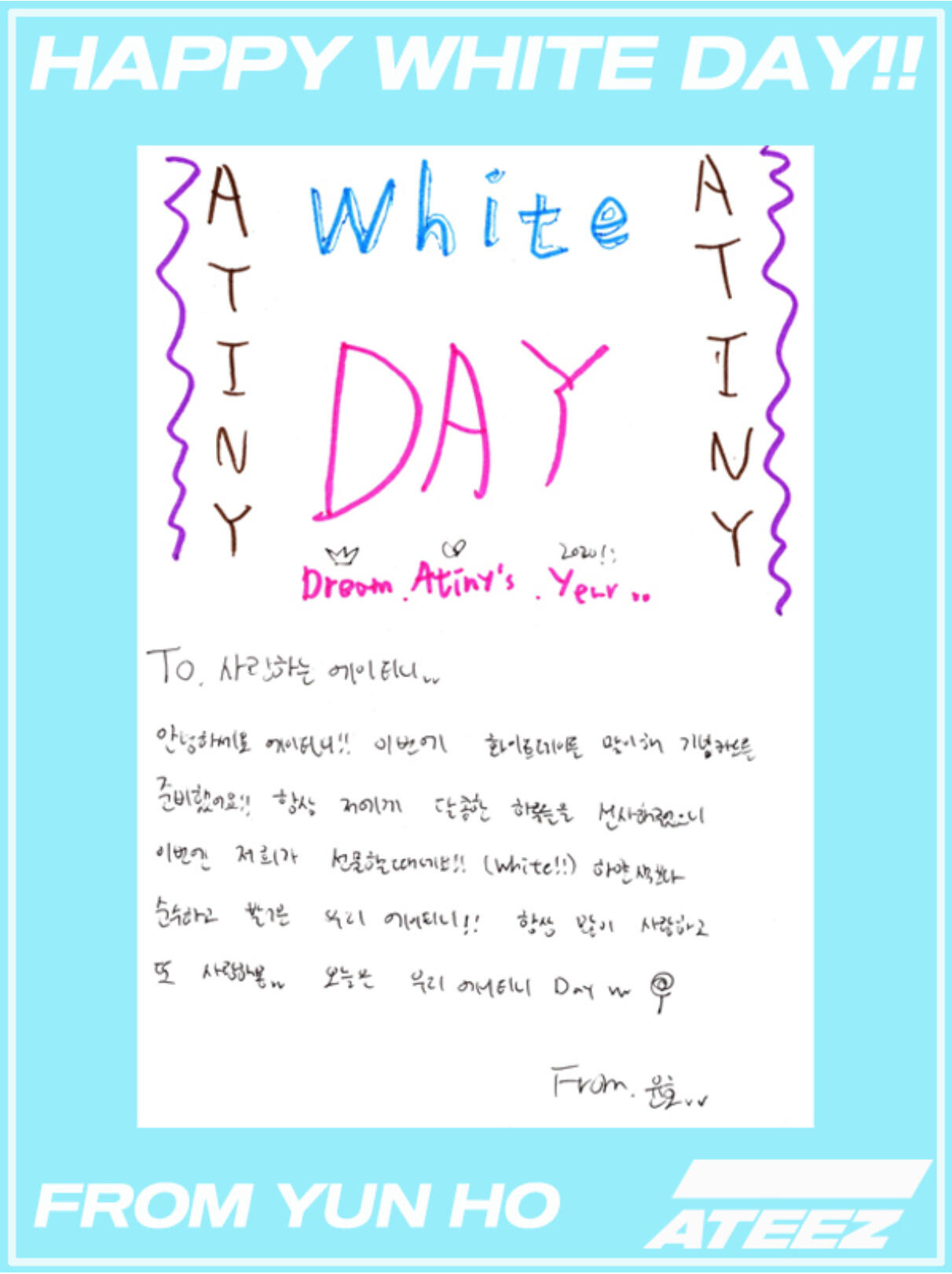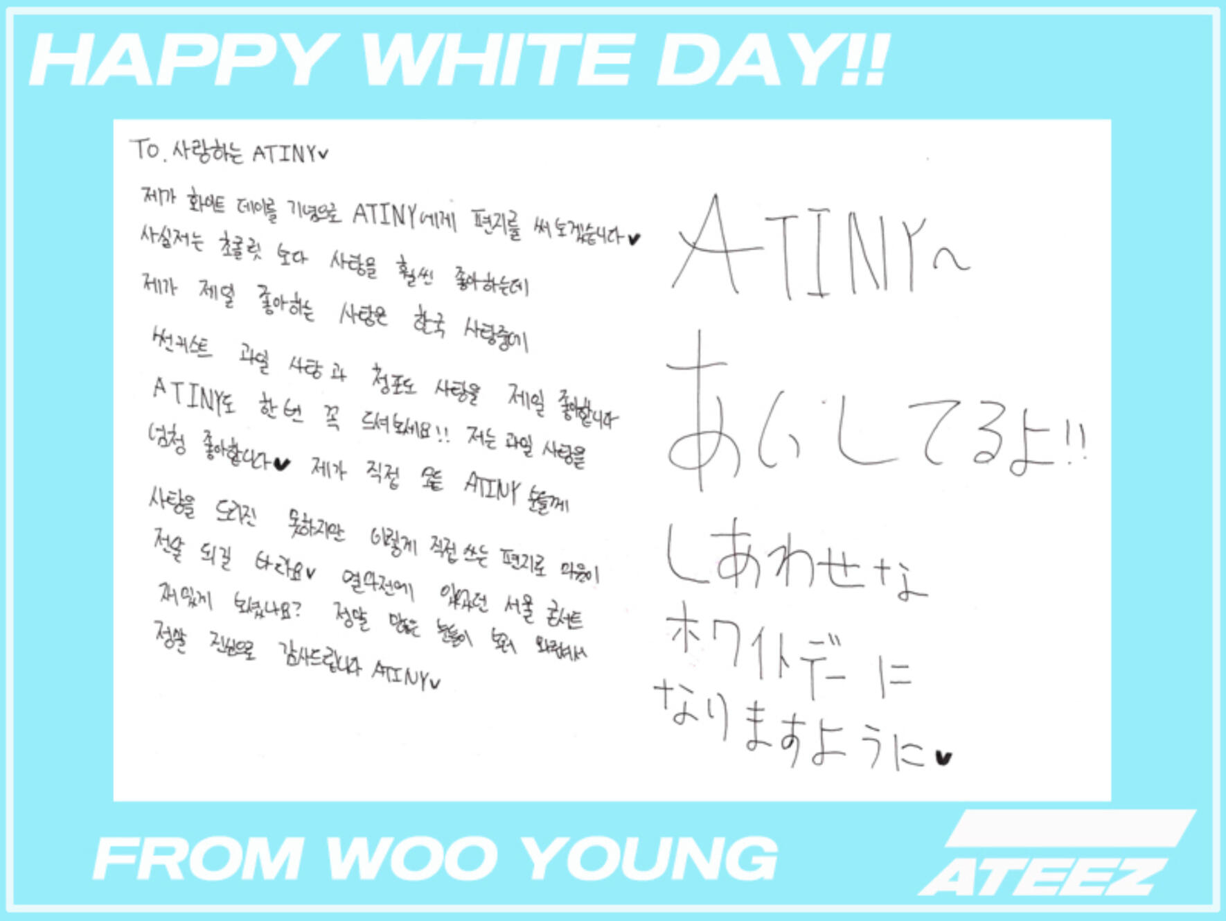 I'll write a letter to ATINY to celebrate White Day ♡