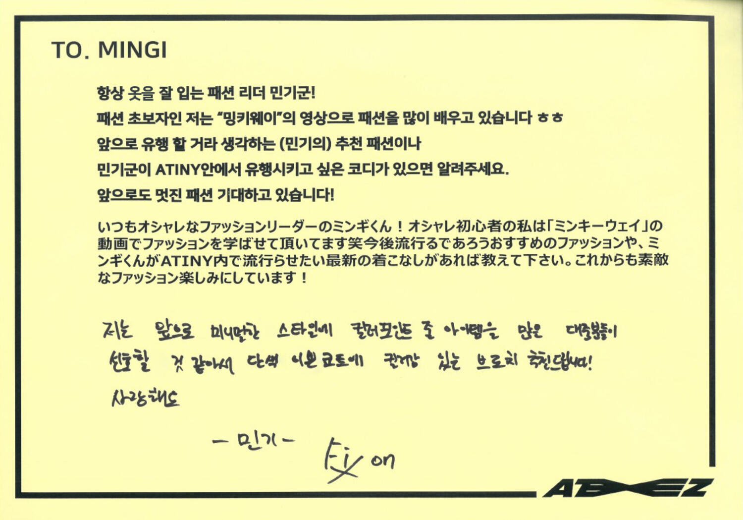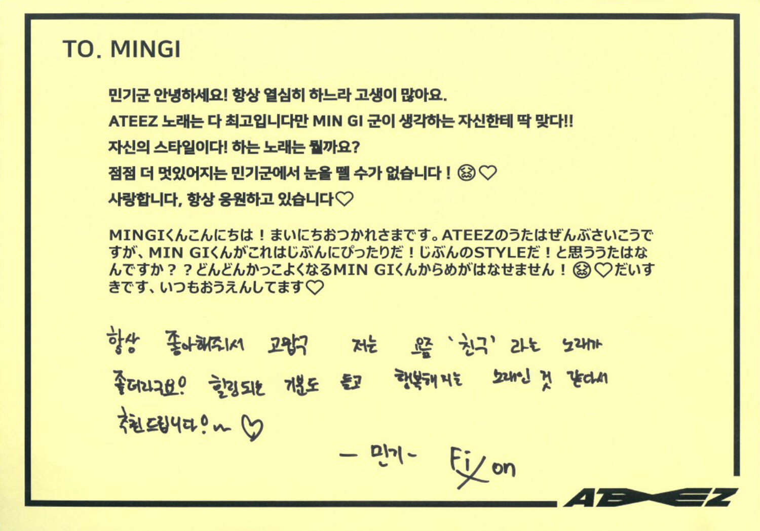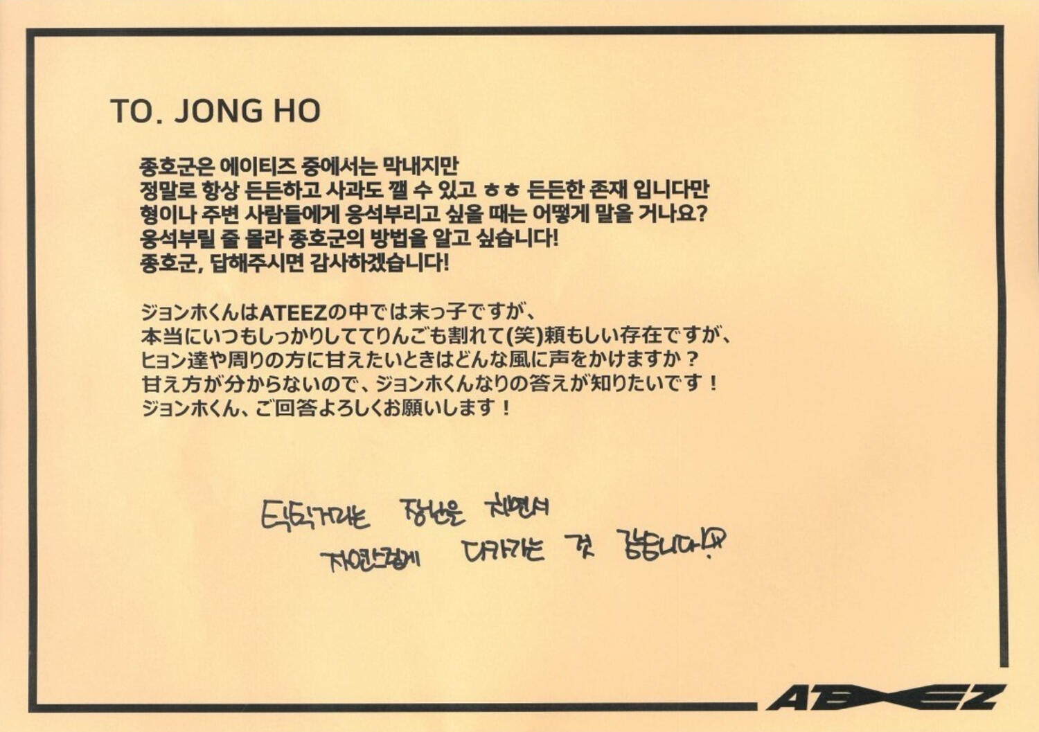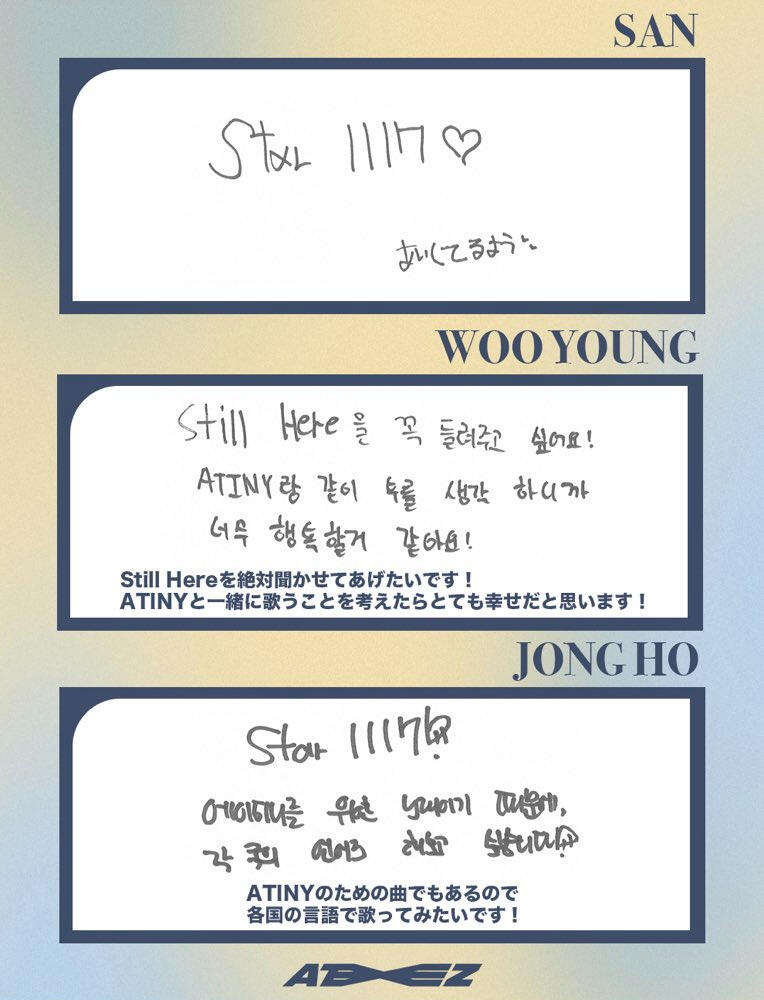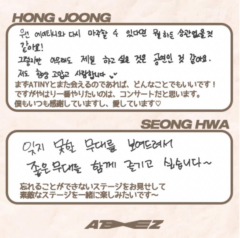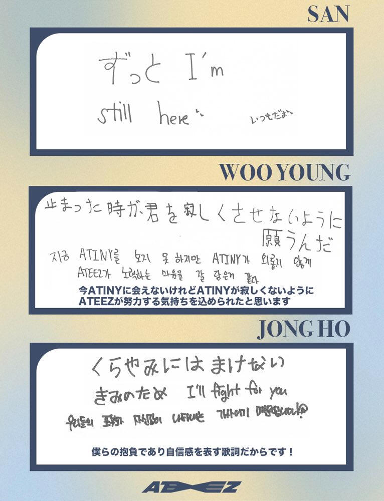 From.HongjoongI learned what happiness is because of the memories I've had with ATINY for the past 3 years!