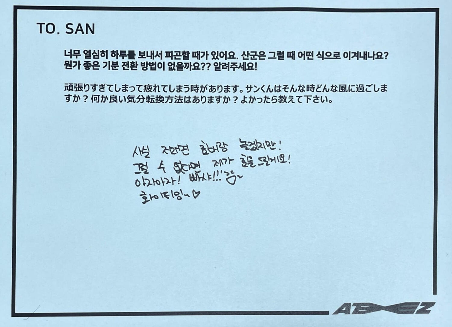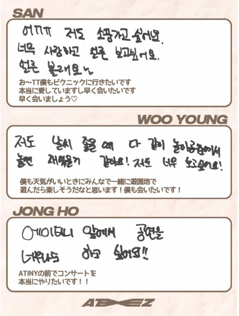 this is an archive of ateez's japan fanclub. this content is either inaccessible for a lot of atiny's or is required to be purchased. i'm providing this content to atiny's because everyone deserves to see what ateez are posting.rules