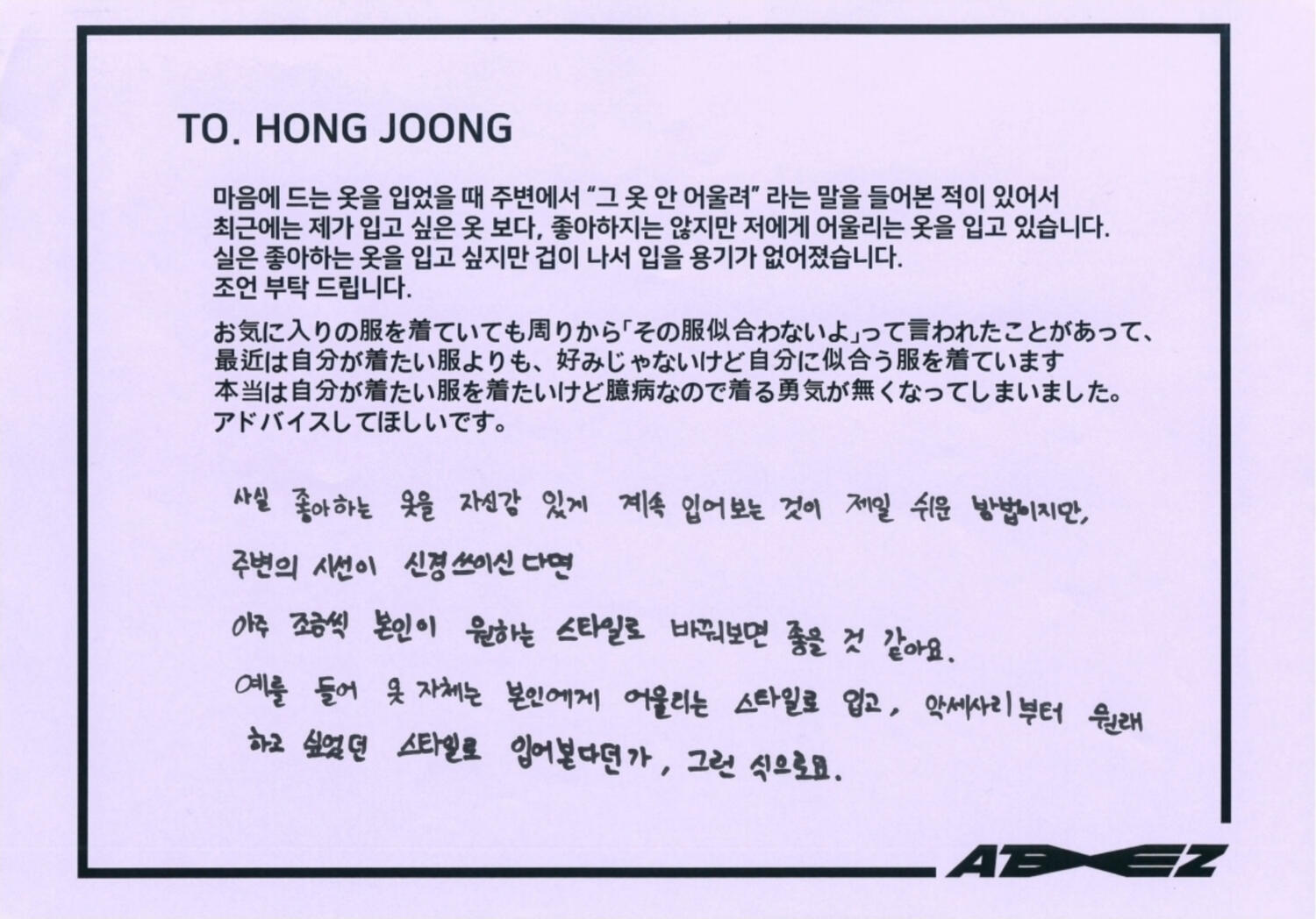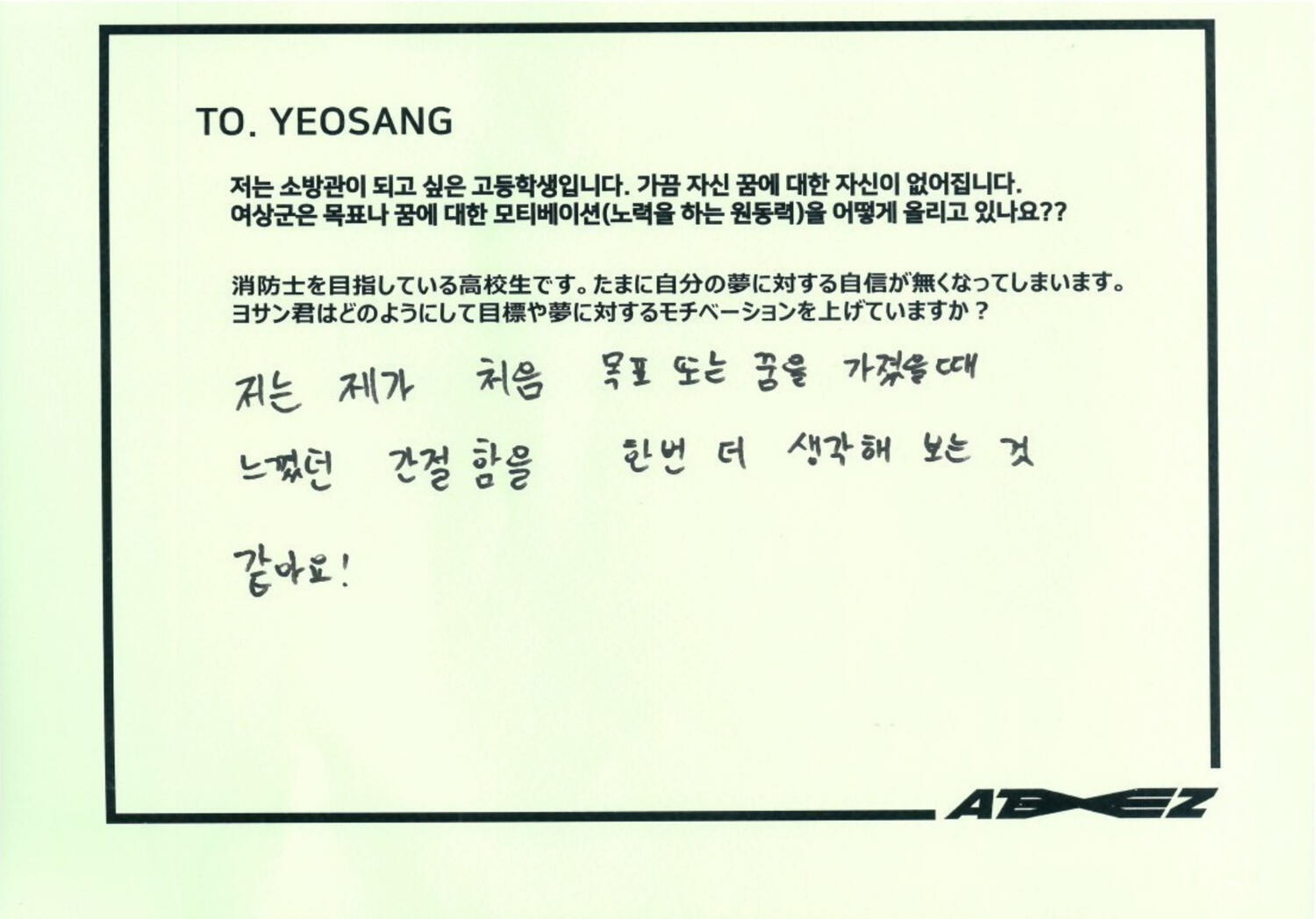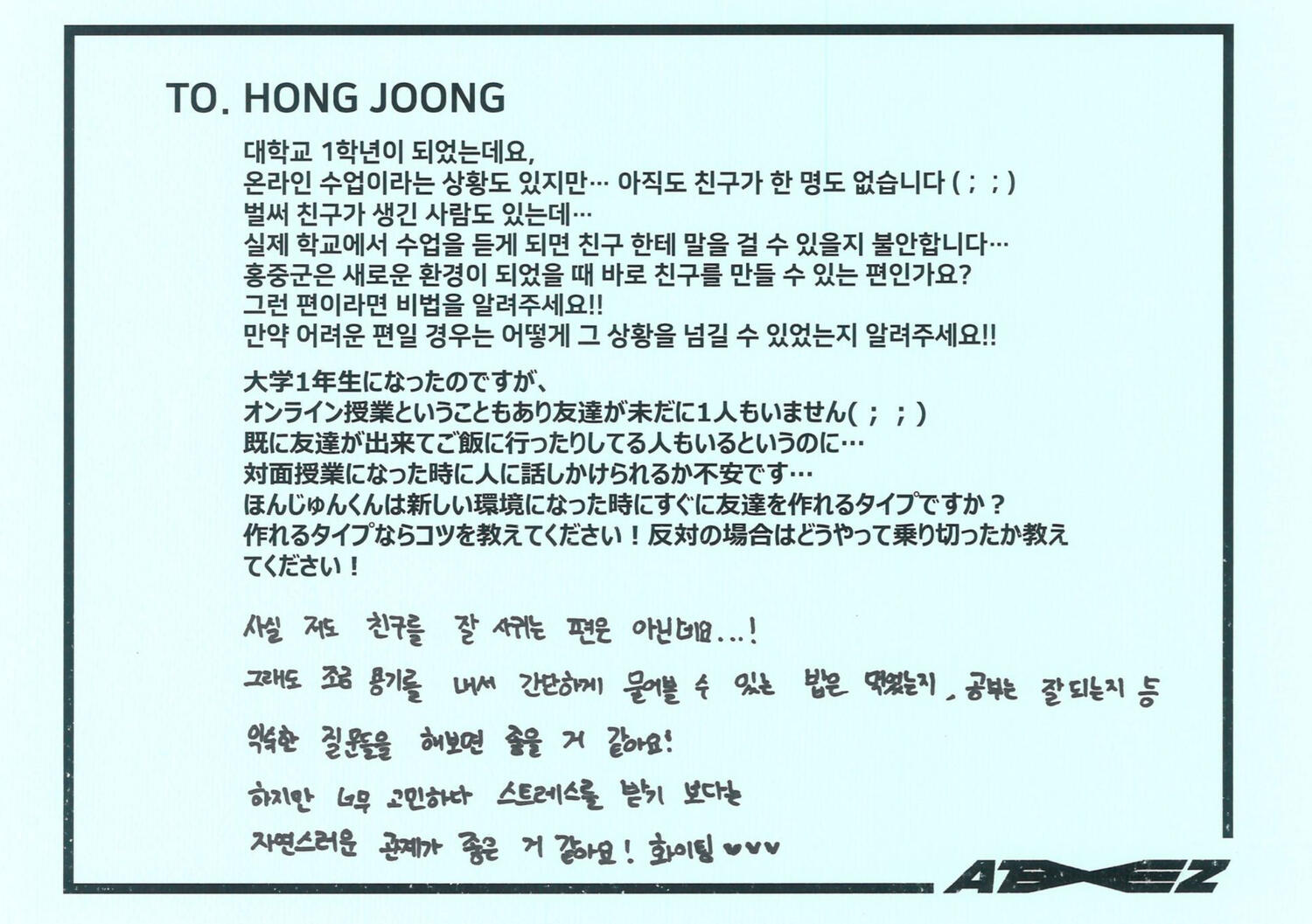 into the a to z online fansign behind