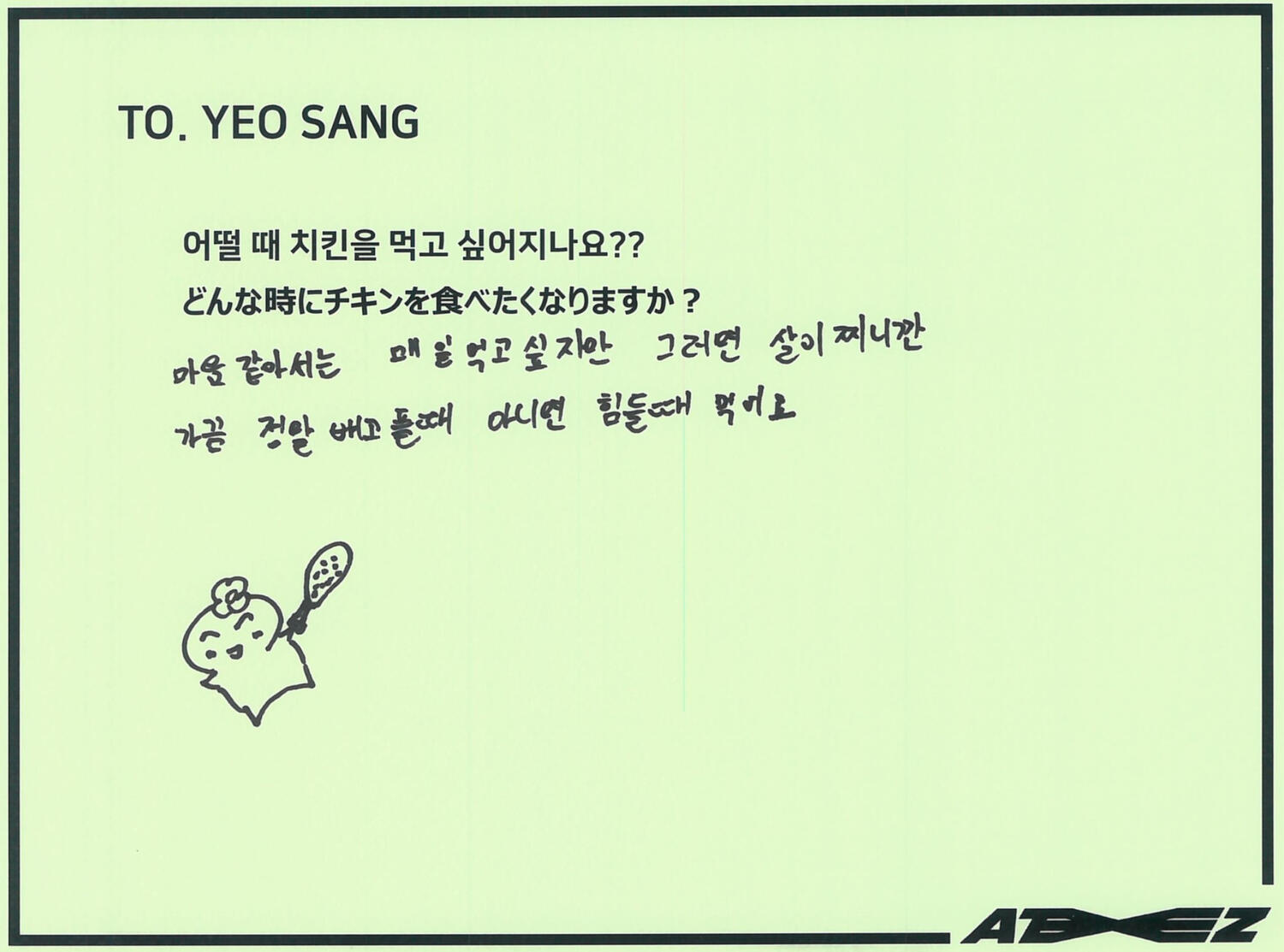 I hope you eat delicious chicken and have a happy day♡Yeosang